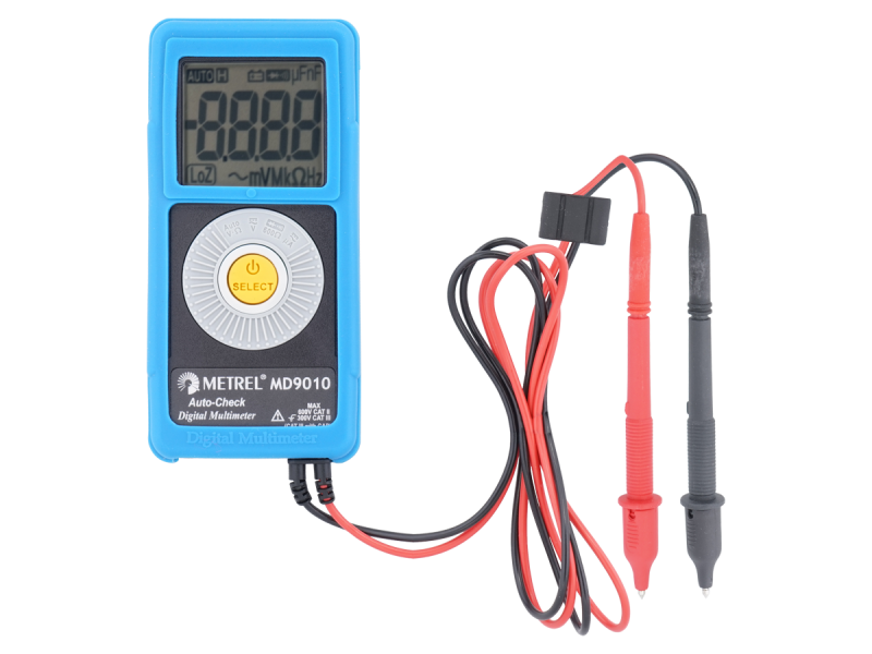 El MD 9010 es uno de nuestros multímetros digitales más pequeños y ligeros. Puede utilizarse para una amplia variedad de aplicaciones. Su alta precisión, pantalla LCD y funciones que incluyen detección de tensión sin contacto y función de comprobación automática hacen este equipo extremadamente versátil y muy asequible